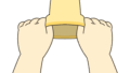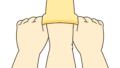 - ① くつしたのくちをひろげる