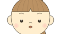 このイラストでは、ポニーテールの子が「え」の音を発音している様子を表現しています。