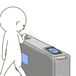 乗り物 ICカードで改札を通る① |タッチする|自分の行動支援・教材用イラスト